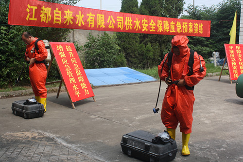 為進(jìn)一步提高安全防范水平,保障夏季高峰供水,6月24日,區(qū)自來水公司根據(jù)安全生產(chǎn)月活動(dòng)安排,在第二水廠舉行了液氯泄漏及突發(fā)性水源微污染事件應(yīng)急預(yù)案演練,公司制水生產(chǎn)、機(jī)電維修、水質(zhì)檢測等工種人員參加了演練,區(qū)域供水增壓泵站工作人員進(jìn)行了全過程學(xué)習(xí)。區(qū)城建局相關(guān)部門負(fù)責(zé)人進(jìn)行了現(xiàn)場指導(dǎo),區(qū)污水處理廠和亨達(dá)水務(wù)等兄弟單位組織人員現(xiàn)場觀摩。